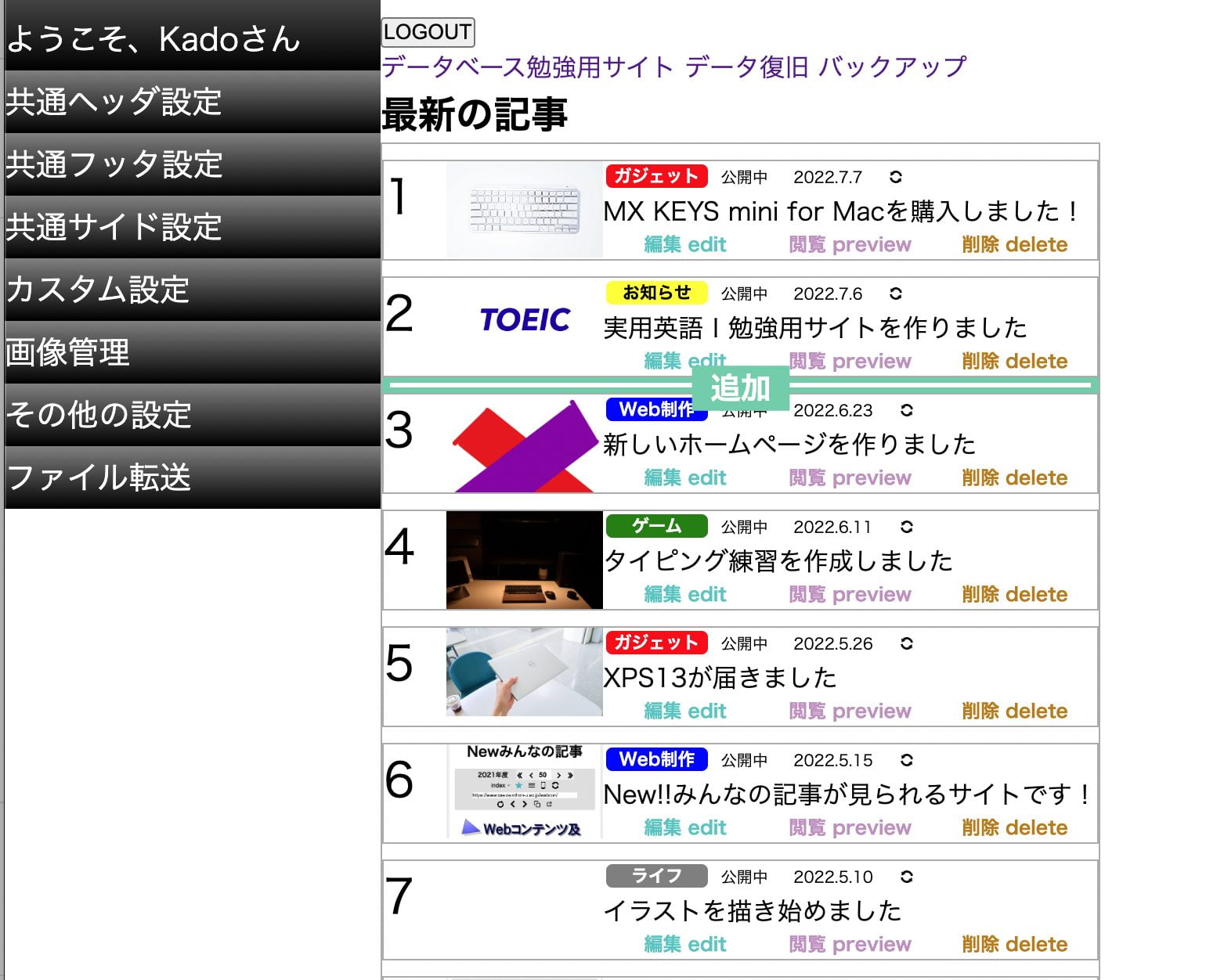HTML, CSS, Javascript, そして新たにPHPを用いて、WordPressのような機能を持つ管理者用サイトを作ってみました。